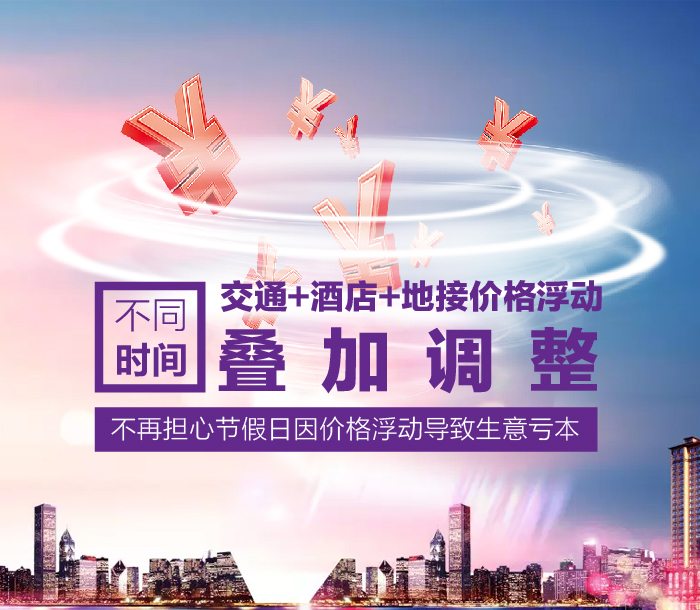 價格更新軟件再添雙翼,浮動價格多個時間段可以疊加調(diào)整,滿足不同時間段,交通,酒店,地接價格的不同浮動需求,不再擔心節(jié)假日因價格浮動導致生意虧本了,特別的功能給特別的您!。
